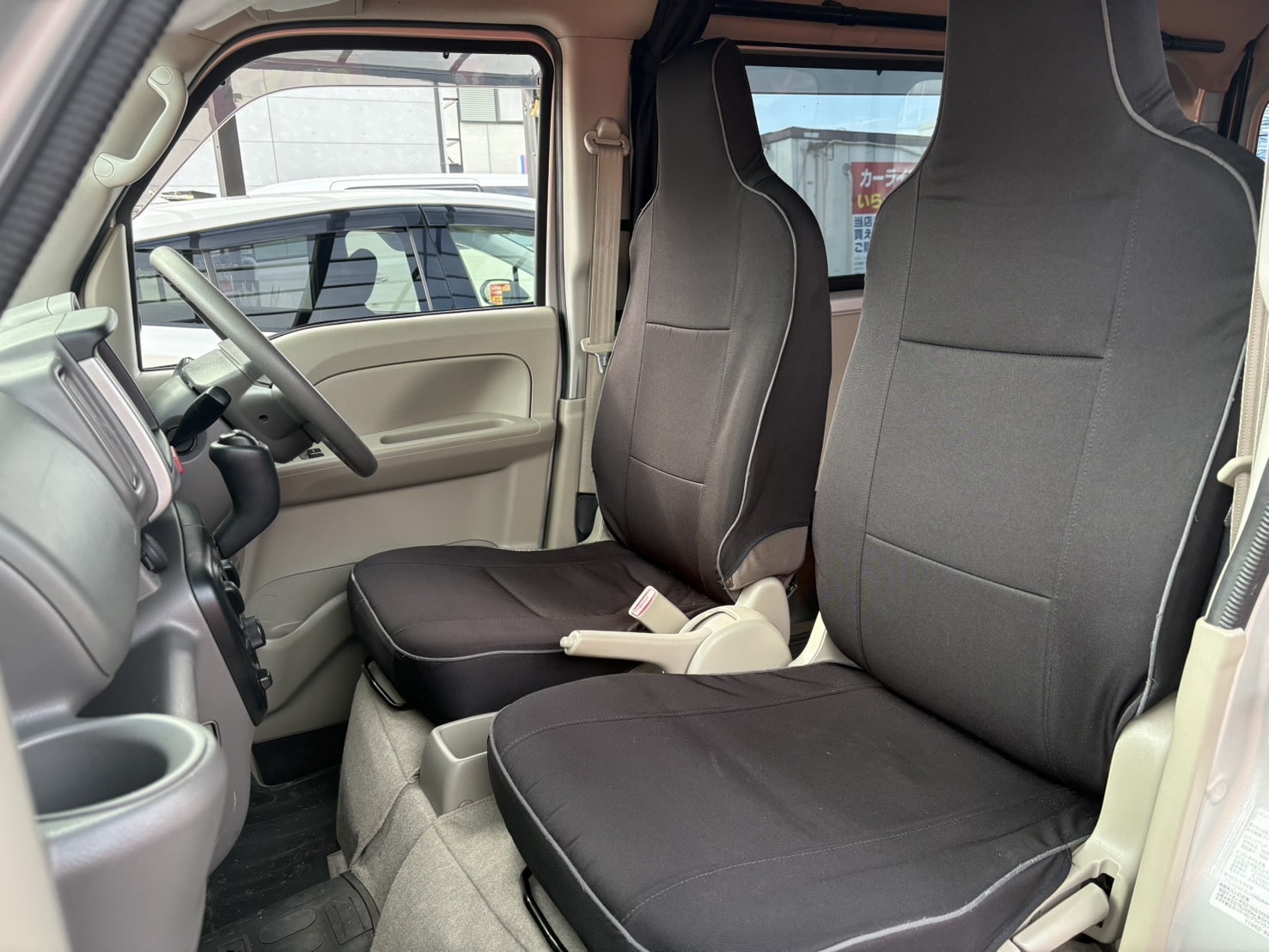 ATOTO製ディスプレイオーディオ ETC キーレス USB接続端子 2nd発進スイッチ 4WD切替スイッチ ピボット製スロットルコントローラー&オートクルーズ シートカバー フルフラットシート パワーウインドウ 社外カーテン ヘッドライトレベライザー 純正12インチスチールホイール