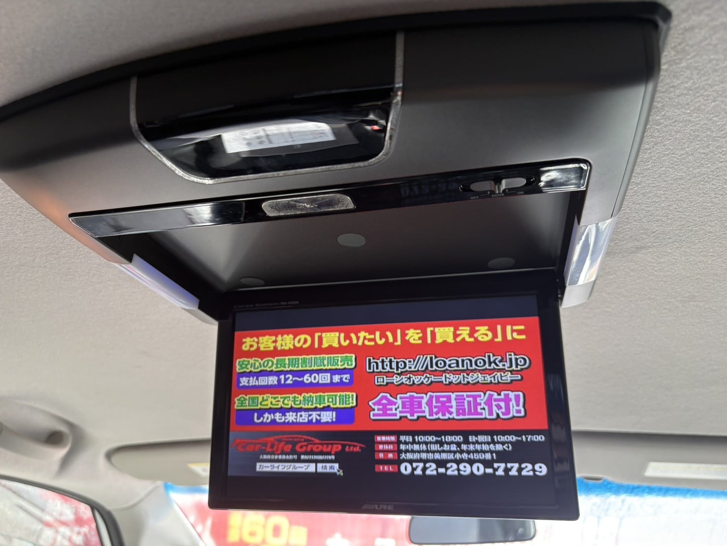 ALPINE製フリップダウンモニター搭載でお子様がおられるご家庭の方も嬉しいですね☺️