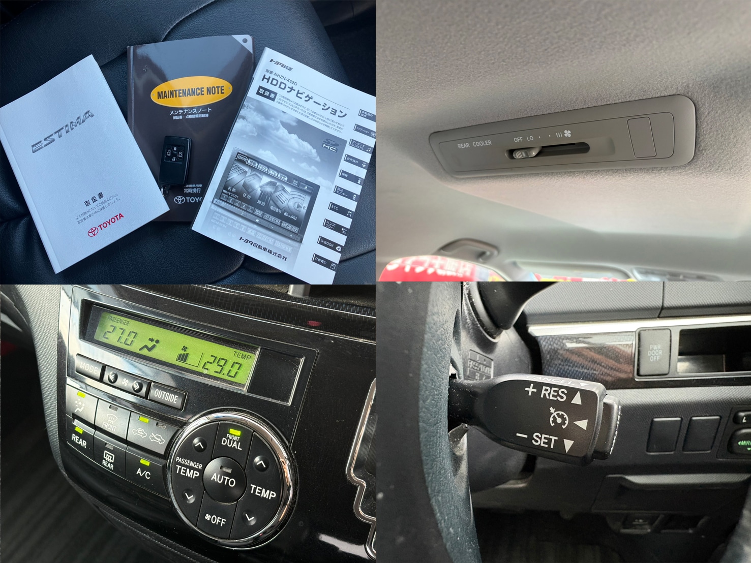純正8インチHDDナビ(CD・DVD・Bluetoothオーディオ・フルセグTV・ミュージックサーバー・SD) バックカメラ 両側パワースライドドア ビルトインETC プッシュスタート&スマートキー デュアルエアコン リア送風機 革巻きステアリング ステアリングスイッチ クルーズコントロール ステアリングスイッチ 2列目キャプテンシート&オットマン レザー調シートカバー AUTOライト HIDヘッドライト フォグランプ ウィンカーミラー 純正18インチAW メンテナンスノート&取説