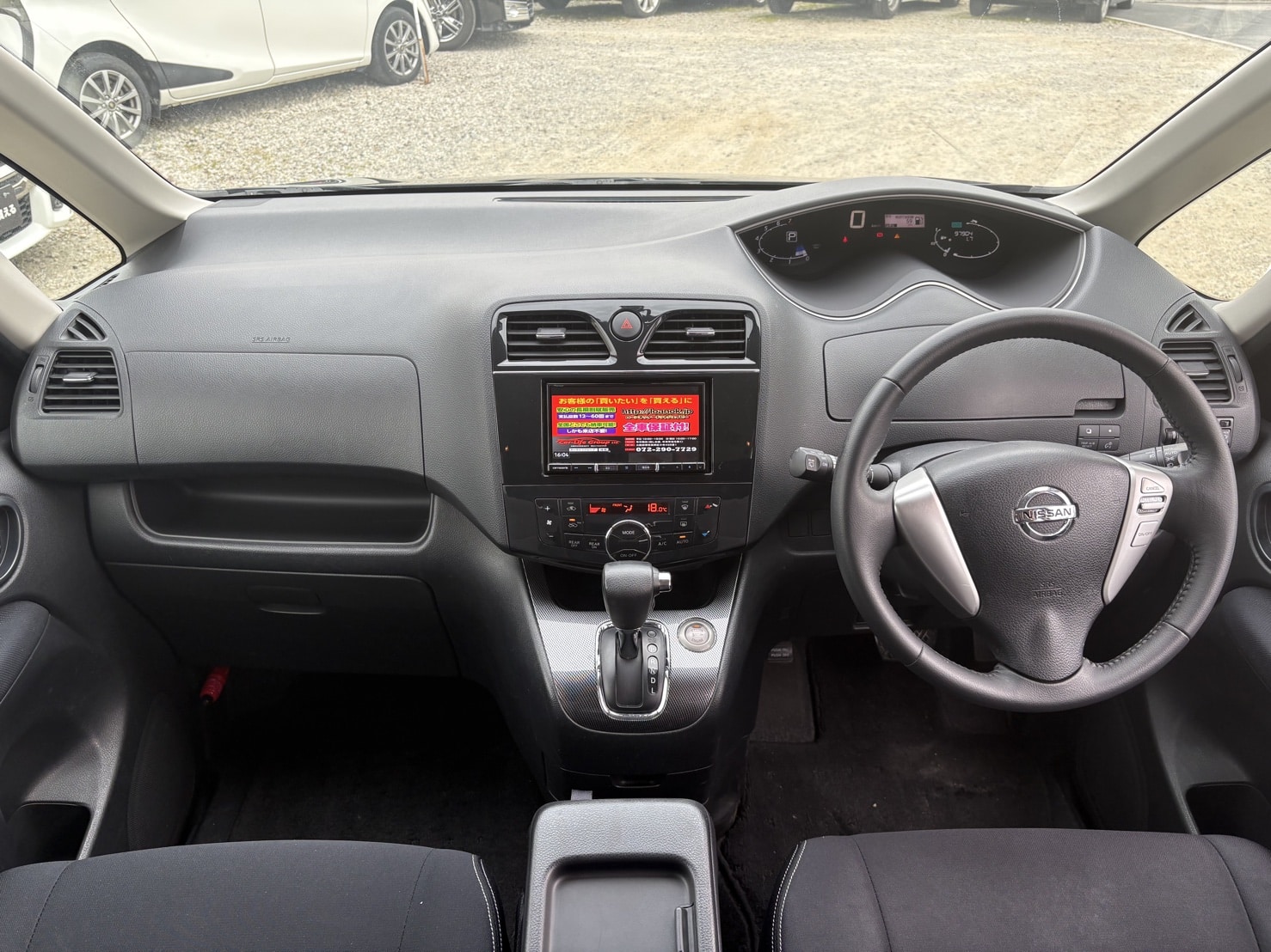 社外SDナビ(CD・DVD・フルセグTV・Bluetoothオーディオ・SD) バックカメラ 両側スライドドア(左側パワー) プッシュスタート&スマートキー ビルトインETC マルチセンターシート ウォークスルー 2列目サンシェード AUTOエアコン Wエアコン 革巻きステアリング クルーズコントロール AUTOライト ヘッドライトレベライザー フォグランプ 電格ミラー ウインカーミラー 純正16インチAW