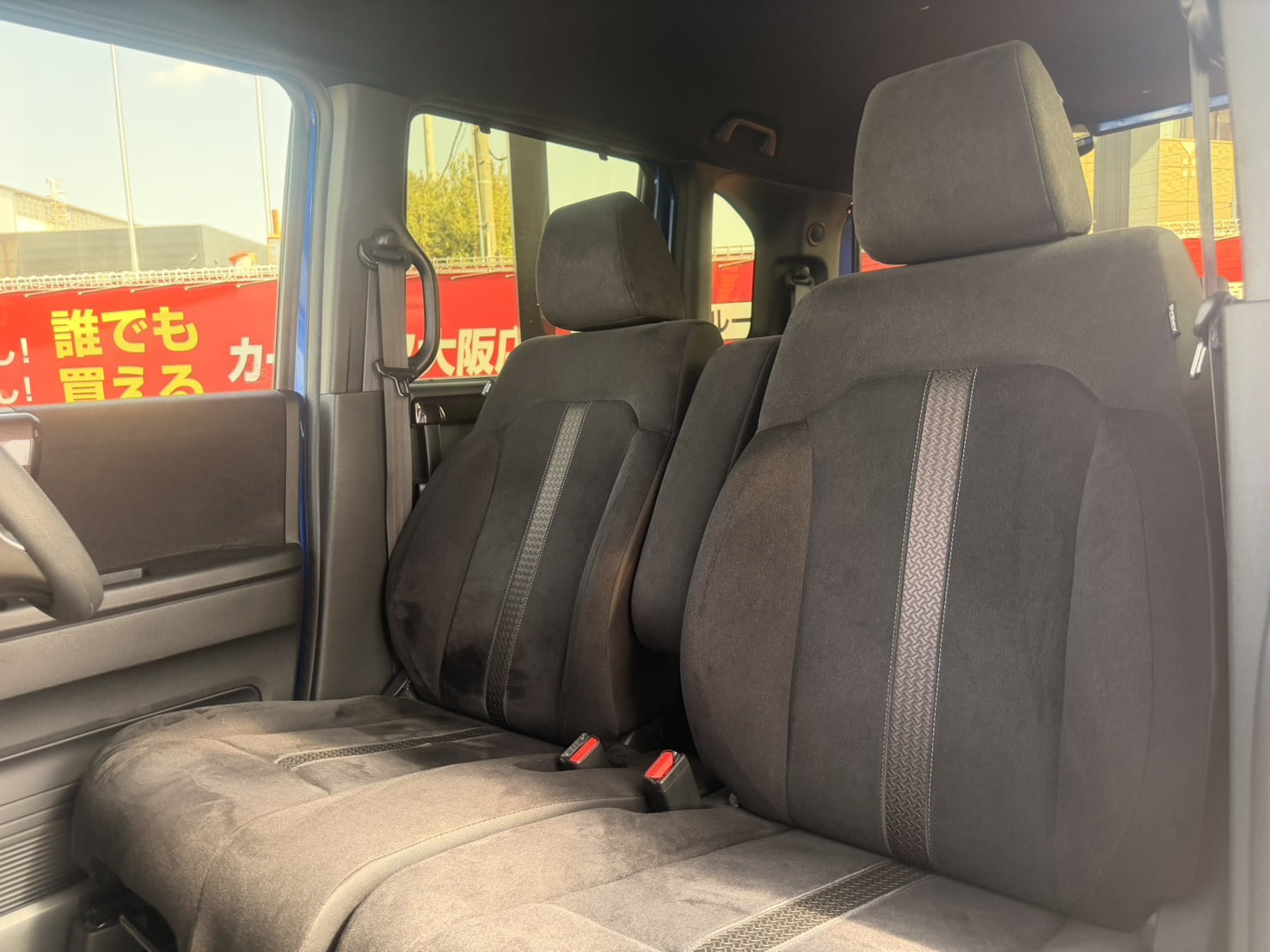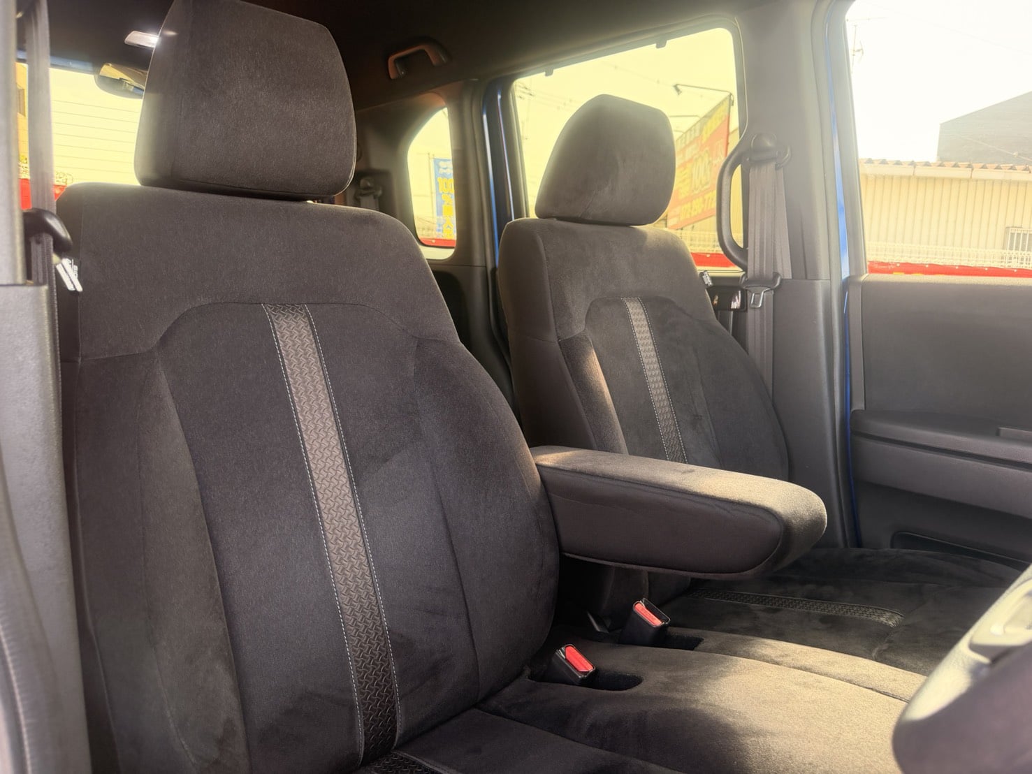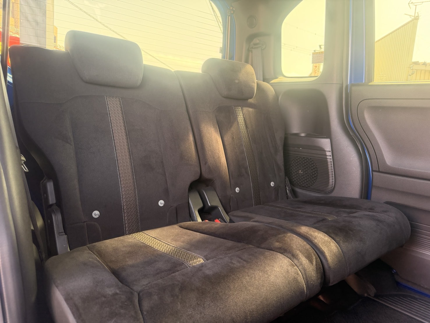 青の外装がチャームポイントッ😋🫧 日差しが強い日でも大丈夫な後席サンシェード付き✨ クルーズコントロール搭載で高速の運転もラクチン🙆♀️✌️ 《1年保証付》