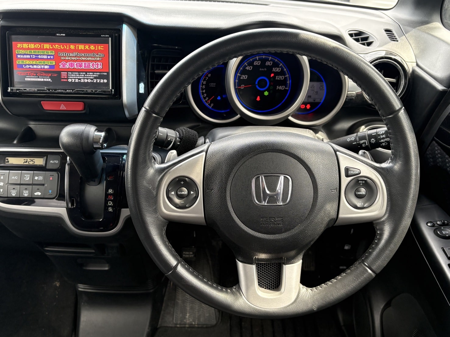 社外SDナビ(CD・DVD・Bluetoothオーディオ・フルセグTV・SD) バックカメラ ETC 両側パワースライドドア プッシュスタート&スマートキー パドルシフト 革巻きステアリング ステアリングスイッチ クルーズコントロール USB接続端子 AUTOエアコン ベンチシート フルフラットシート AUTOライト HIDヘッドライト フォグランプ 電格ミラー ウィンカーミラー 純正15インチAW