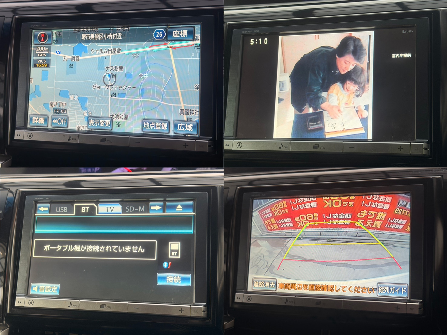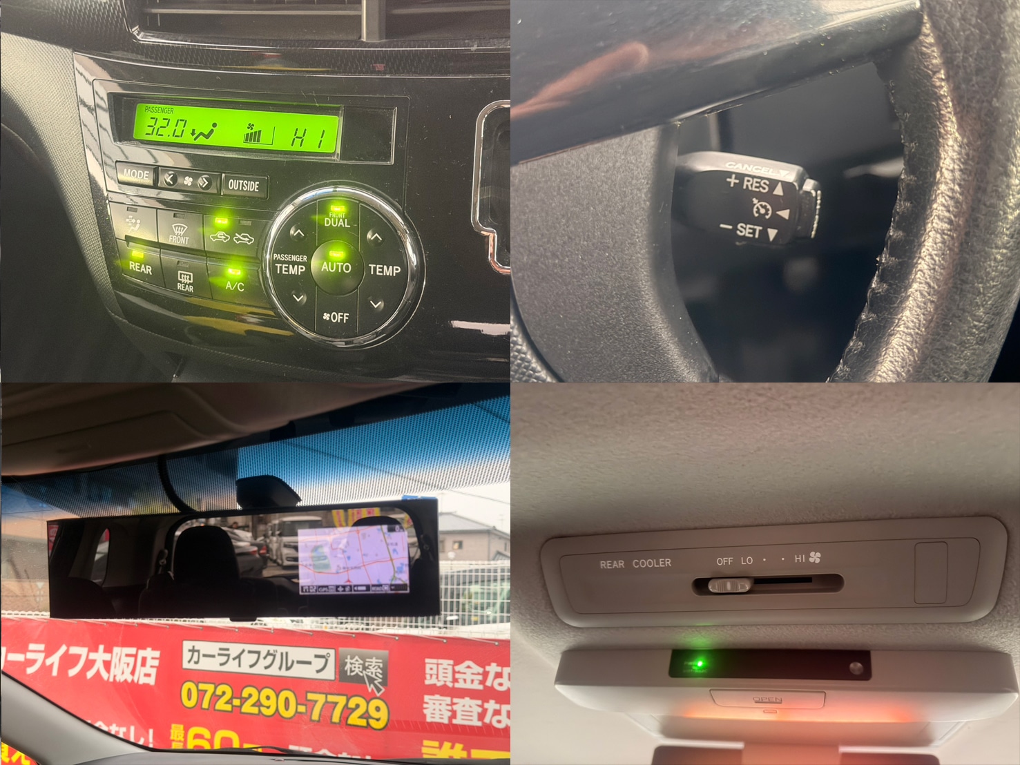 純正8インチHDDナビ(CD・DVD・Bluetoothオーディオ・フルセグTV・SD・MSV) バックカメラ フリップダウンモニター 両側パワースライドドア ビルトインETC ミラー一体型レーダー探知機 プッシュスタート&スマートキー デュアルエアコン 革巻きステアリング ステアリングスイッチ クルーズコントロール リア送風機 2列目キャプテンシート&オットマン ウォークスルー AUTOライト HIDヘッドライト フォグランプ 電格ミラー ウィンカーミラー 純正18インチAW
