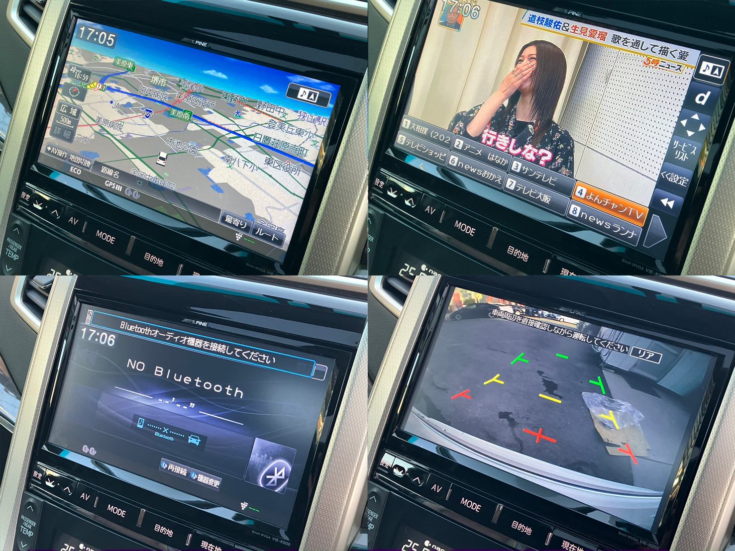 社外9インチSDナビ(CD・DVD・Bluetoothオーディオ・フルセグTV・SD) バックカメラ ビルトインETC フリップダウンモニター 両側パワースライドドア パワーバックドア プッシュスタート&スマートキー 革巻きステアリング ステアリングスイッチ クルーズコントロール Wエアコン nanoe搭載デュアルAUTOエアコン ハーフレザーシート キャプテンシート&オットマン Wサンルーフ 障害物センサー AUTOミラー AUTOライト 社外テールランプ 社外マフラー 社外エアロ HIDヘッドライト フォグランプ ウィンカーミラー 社外20インチAW メンテナンスノート&取説 ※スタッドレスタイヤ4本お付けします(純正17インチAW)
