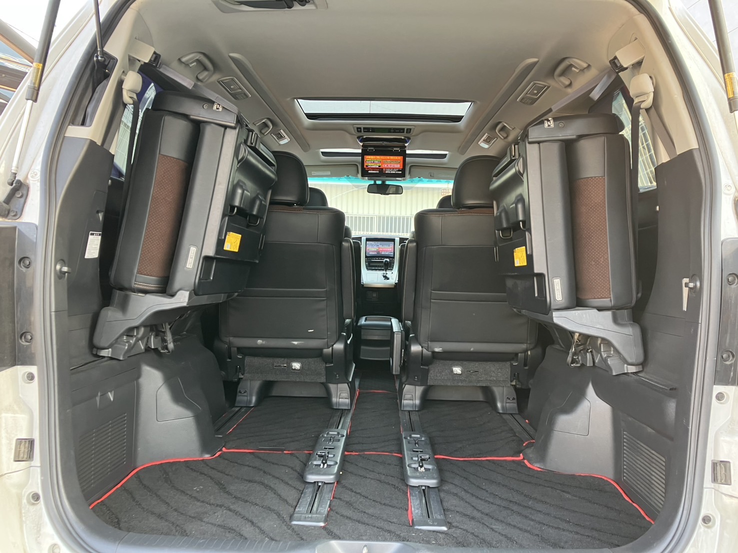 ~後期型~ 特別仕様グレードでワンランク上の上質感🔱 Wサンルーフで解放感抜群⛅✨ お子様が居る家庭にはありがたいフリップダウンモニター付き😋✌️ 室内広々空間で大勢でお出掛けしても窮屈にならない✨ パワーリアゲート付きで室内からでもトランク開閉可能💫 《1年保証付》
