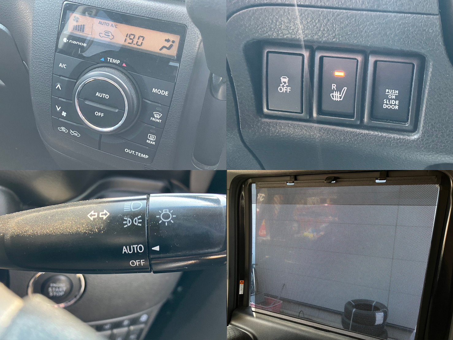 純正メモリーナビ(CD・DVD・フルセグTV・Bluetoothオーディオ) 全方位モニター 両側パワースライドドア ビルトインETC アイドリングストップ ステアリングスイッチ 運転席シートヒーター 2列目サンシェード プッシュスタート&スマートキー フルフラットシート ベンチシート ドライブレコーダー 衝突被害軽減システム 車線逸脱防止機能 LEDヘッドライト フォグランプ ウインカーミラー 純正14インチAW