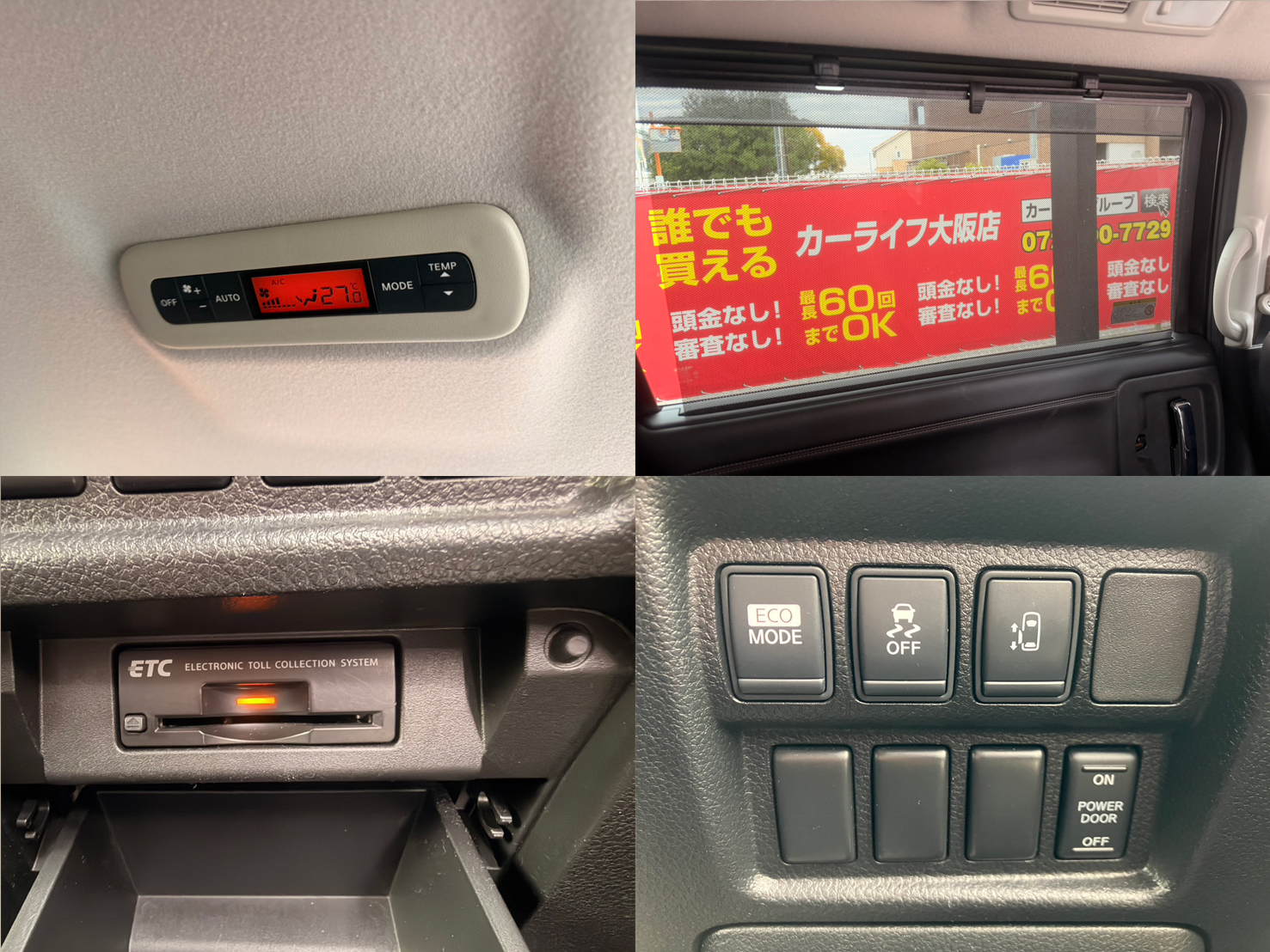 純正HDDマルチナビ(CD・DVD・フルセグTV・Bluetoothオーディオ・MSV) アラウンドビューモニター 後席モニター 両側スライドドア(左側パワー) ビルトインETC プッシュスタート&スマートキー 純正プラズマクラスターイオン搭載デュアルAUTOエアコン Wエアコン 後席サンシェード ハーフレザーシート キャプテンシート&オットマン ウォークスルー 革巻きステアリング ステアリングスイッチ 障害物センサー 家庭用コンセント USB接続端子 AUTOライト HIDヘッドライト フォグランプ 電格ミラー ウインカーミラー 純正18インチAW