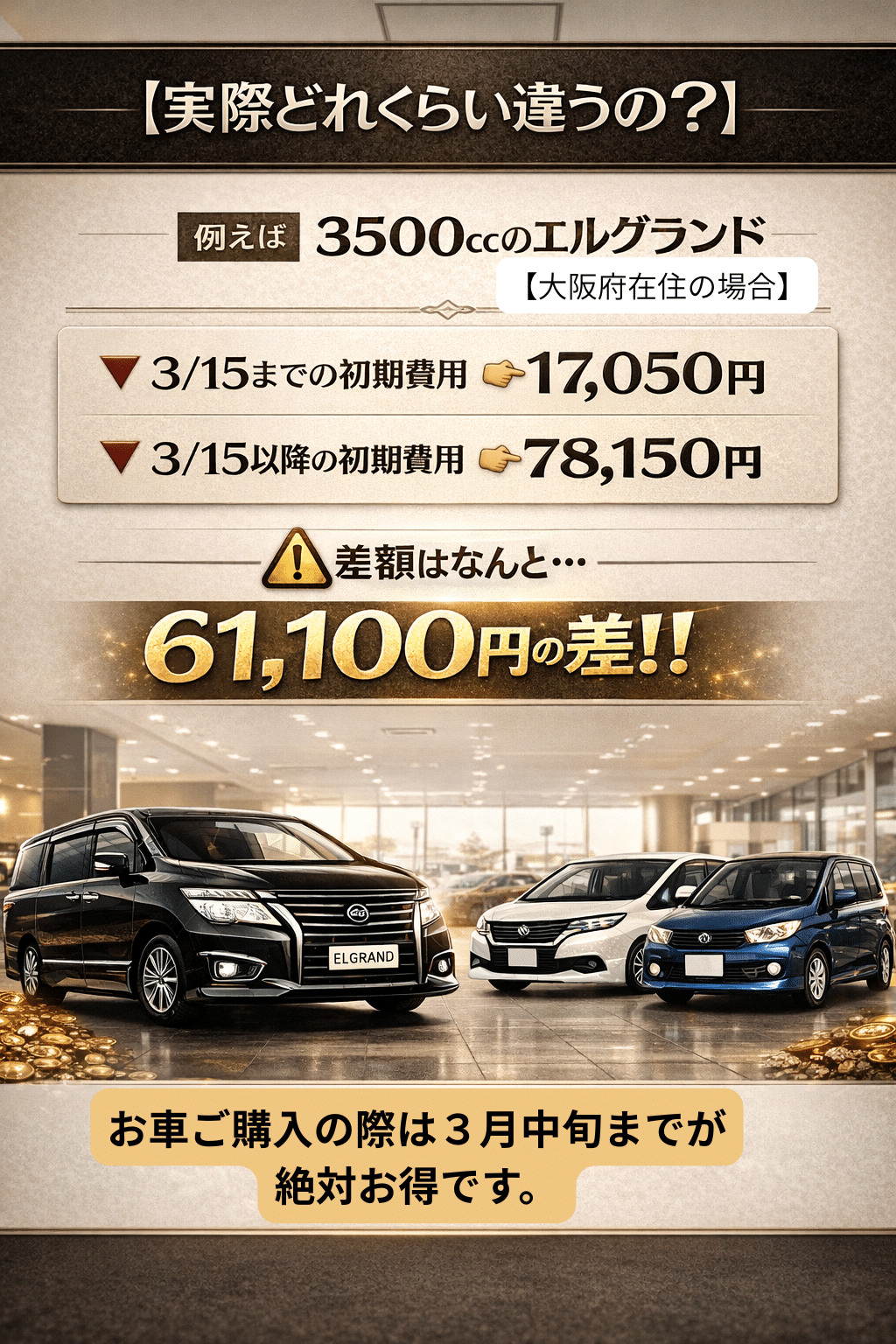 同じ車でも時期が変わるだけで初期費用が変わることも…💦