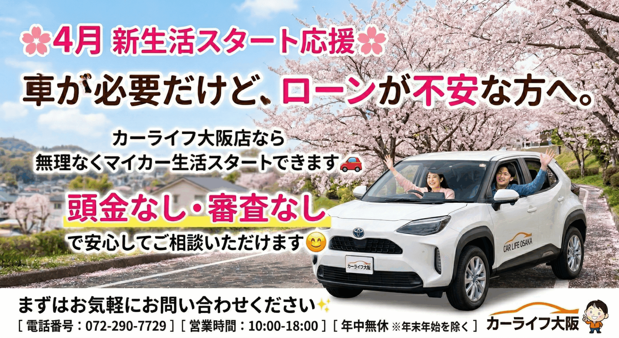 カーライフ大阪店なら✅ 審査なし✅ 頭金なし✅ 最大60回払いOK✅ 全国対応OK